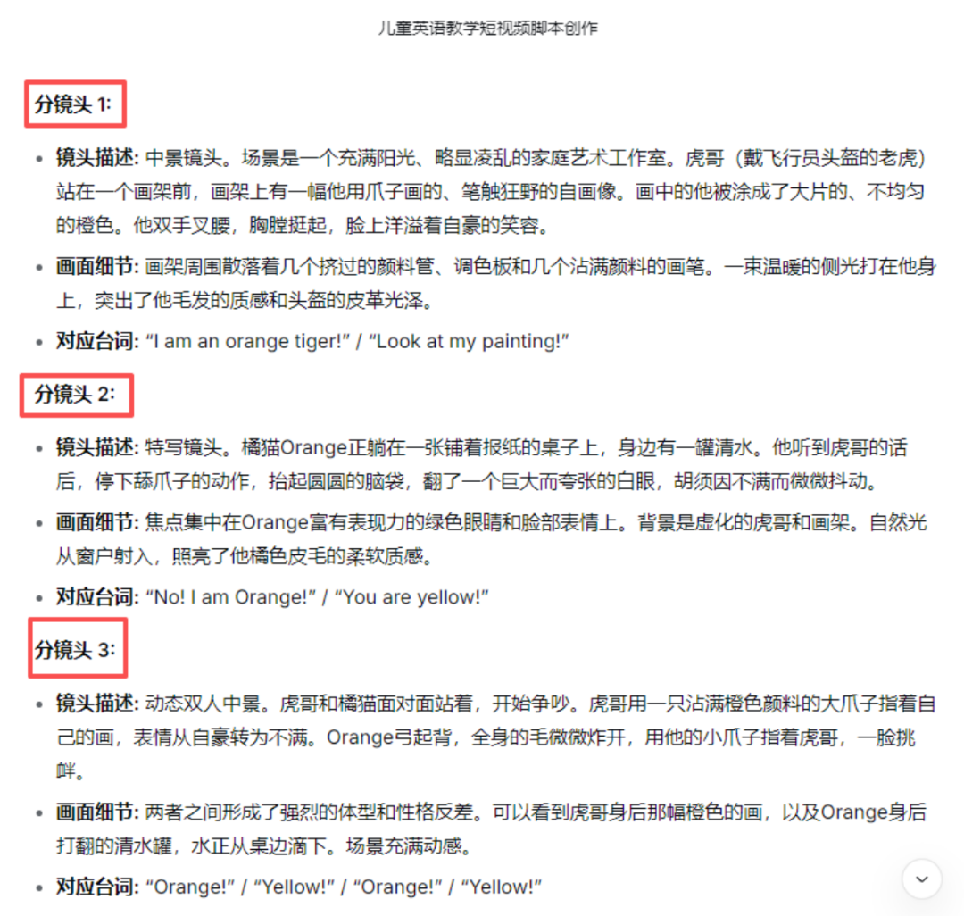 下面看看deepseek给我们提供的分镜头脚本如下: