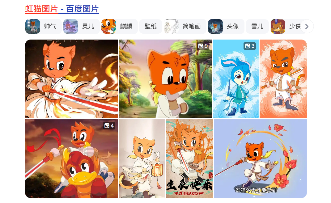 2.画面生成最初我的设计就是想通过虹猫蓝兔七侠传的动画形象来设定,通过百度搜索对应的影视人物来进行二创
