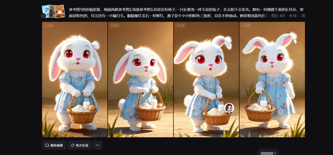 网址:https://jimeng.jianying.com/ai-tool/generate/?type=image图片模型选择图片4.0上传我们下载好的ip形象图片和对标图片作为参考图,输入豆包给我们生成ip形象提示词和画面提示词进行生图,提示词:参考图1的外貌形象,画面风格参考图2,一只圆滚滚的拟人化橘色猫咪,毛发软软的。他有像小云朵一样的白色肚皮,尖粉色的耳朵尖带着小黑点,还有两只像绿宝石一样的大圆眼睛。他脖子上总系着一个黄色小领结,尾巴毛茸茸的,兴奋时就会不停甩动。在长椅上伸着懒腰,舔着爪子