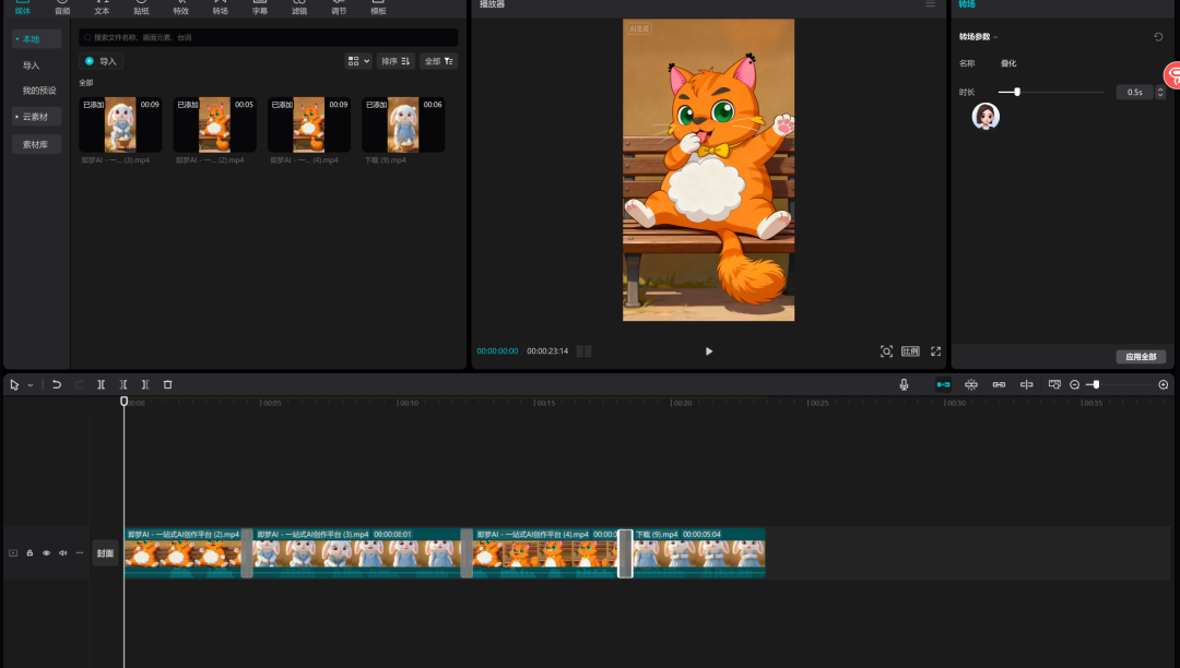 3.剪辑成片打开剪映桌面版本,导入所有视频片段,添加合适的转场