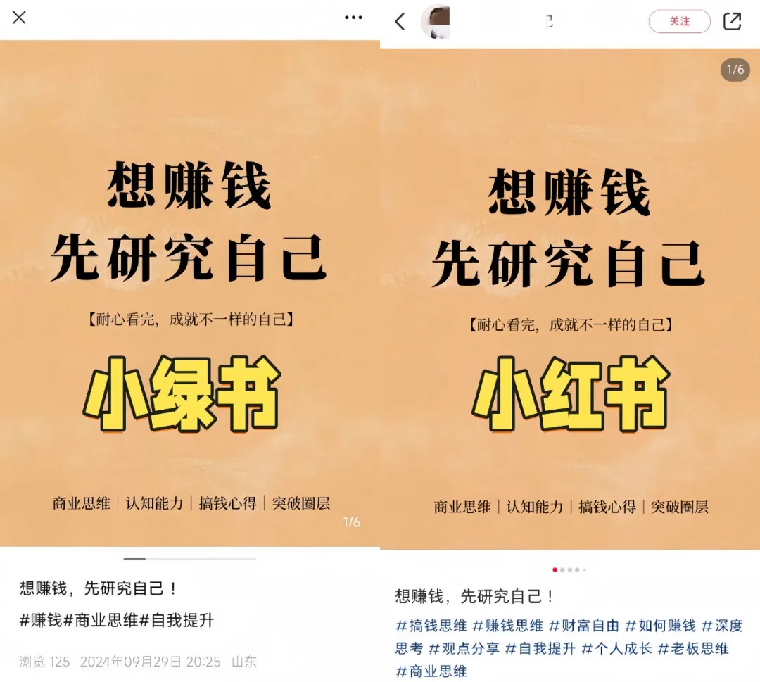 目前小绿书这个板块还是很缺内容的,我们现在去做,基本不用自己原创,可以直接搬其他平台内容过来即可。