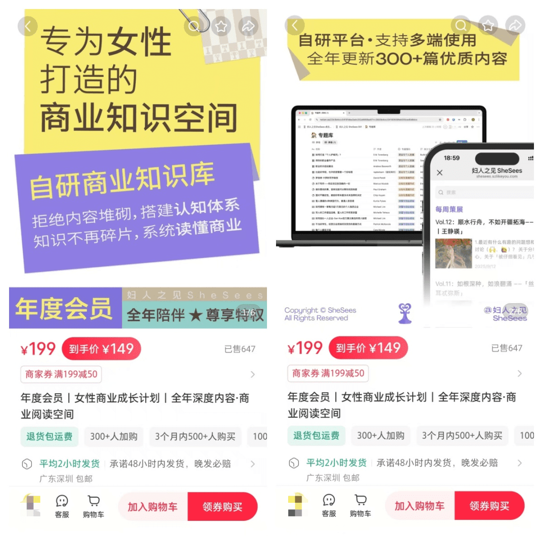 完全戳中了现代女性的刚需痛点:升职加薪、副业创收、理财避坑…统统都是高频焦虑点。交付更是轻到没朋友——塞满精选文章的在线文档+社群链接,成本接近空气。用户觉得超值还会拉闺蜜入伙,文档里埋个联系方式,又能捞一波精准流量