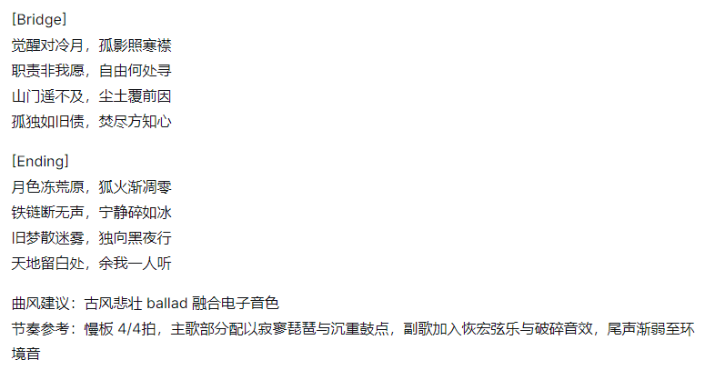 ②这是为妲己生成的歌词示例。