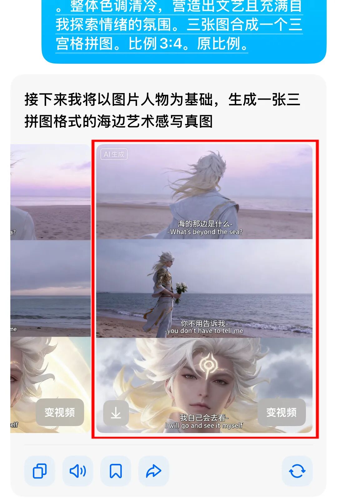 今天要给大家分享一个 “海边三宫格氛围感写真” 的制作教程!它的核心逻辑可以拆成两步,操作毫无门槛,所有人都能够复制套用。
