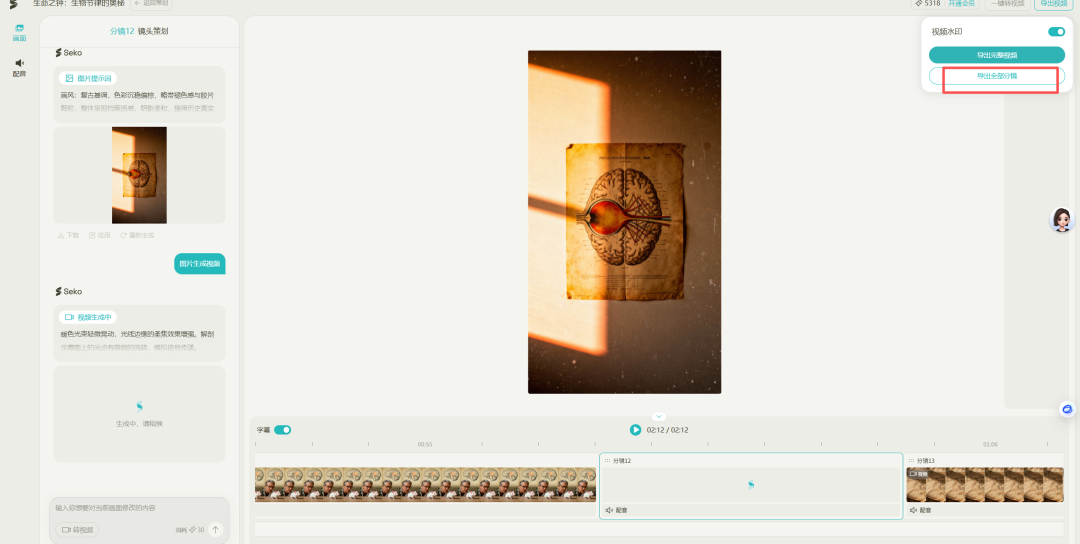 所有画面转视频之后,整体效果非常不错,如果大家想把作品做精一点,可以导出所有的分镜画面,借助剪映进行重新剪辑。