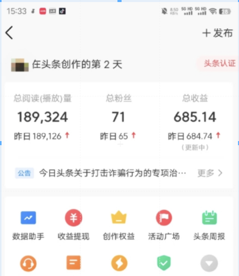 做了两天的账号,收入685,还是很不错的,我第一桶金就是在头条号的中视频计划里赚到的,当然现在改名叫伙伴计划了