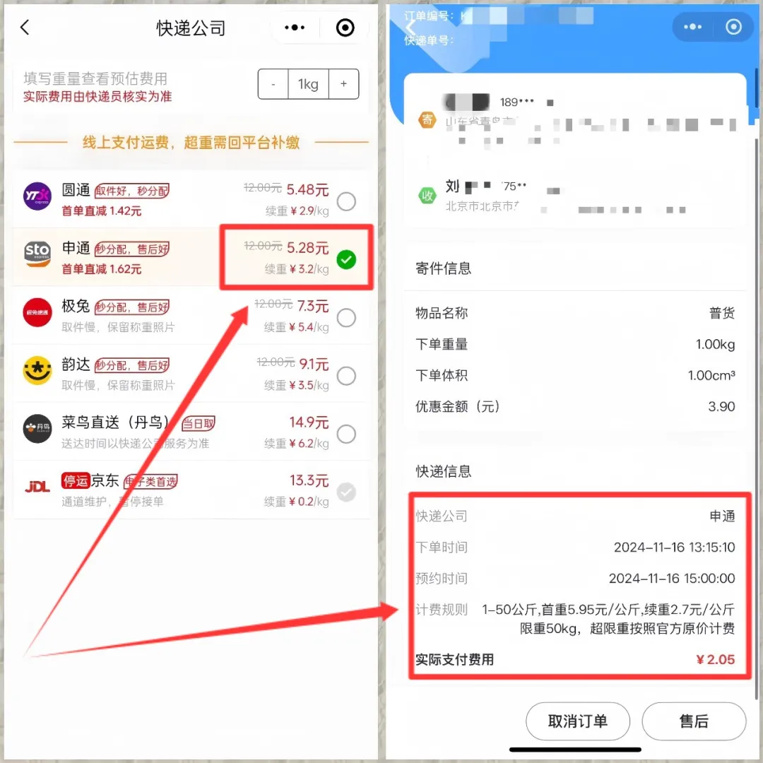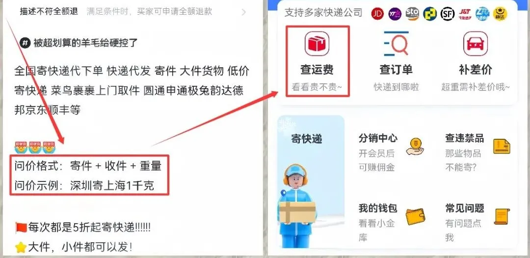 如上图,别人自己寄需要花12元,但是你去寄只需要2.05元,这当中就有12元-2.05元=9.95元的差价。