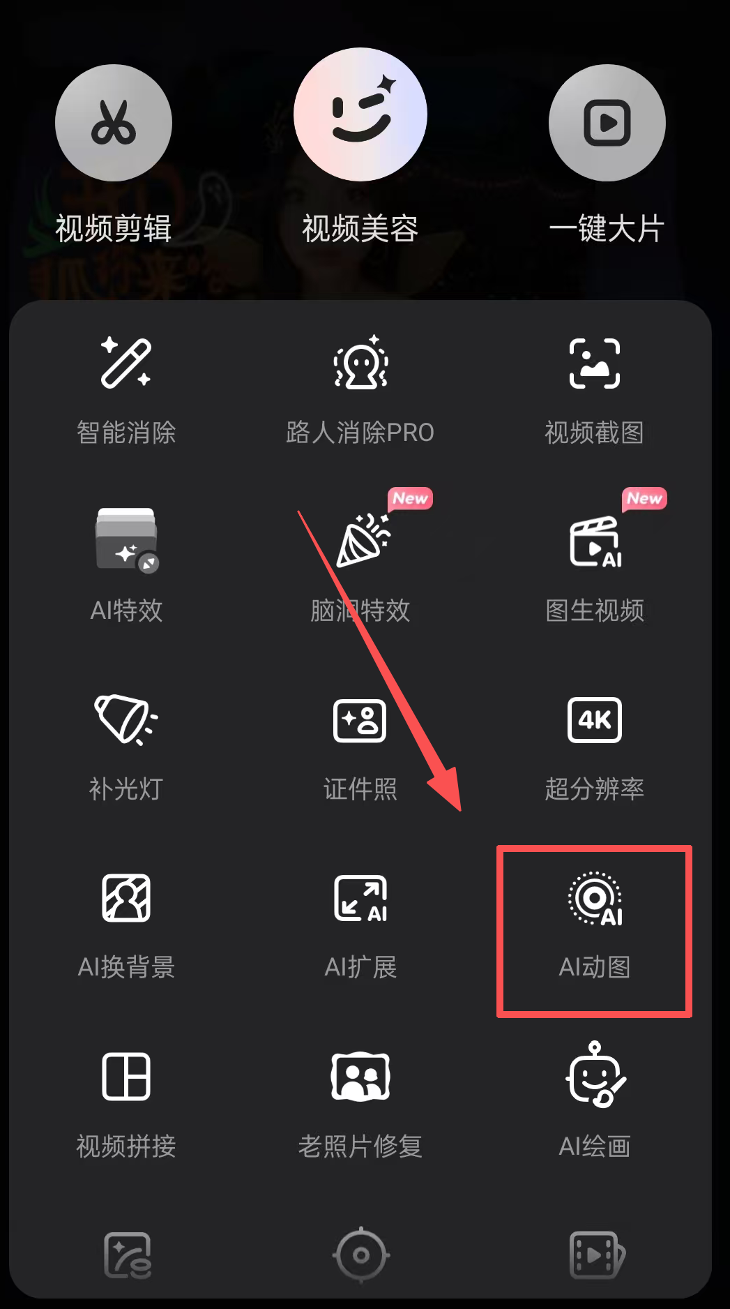 视频生成好以后,手机打开wink软件,选择AI动图,然后上传生成好的视频,系统就会自动把视频变成动图了。