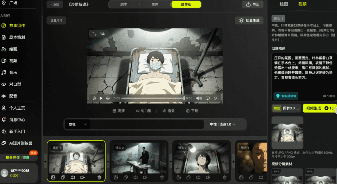 而对于专业玩家来说,在AI生成的提示词和分镜基础上进行自主调整,有更大可能事倍功半地做出相对高质量的漫剧,实现赛道的分野。