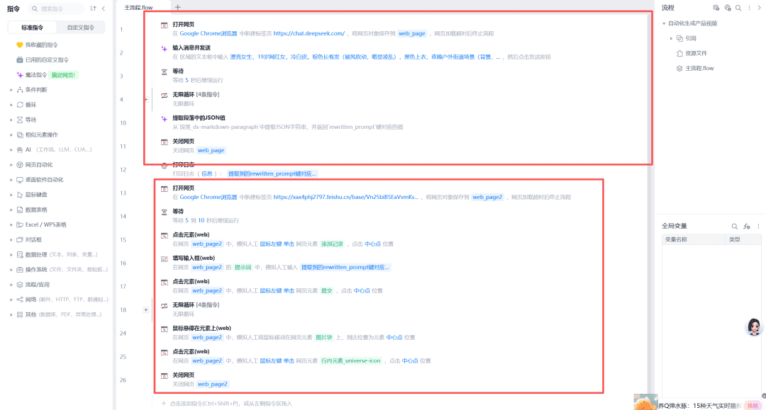 整个流程主要分为俩部分:第一部分借助deepseek帮我们生成提示词,第二部分就是触发飞书进行自动化生视频与下载