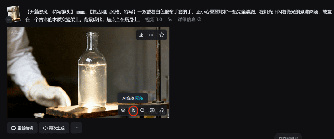 —对生成结果满意的话,直接点击AI 音效