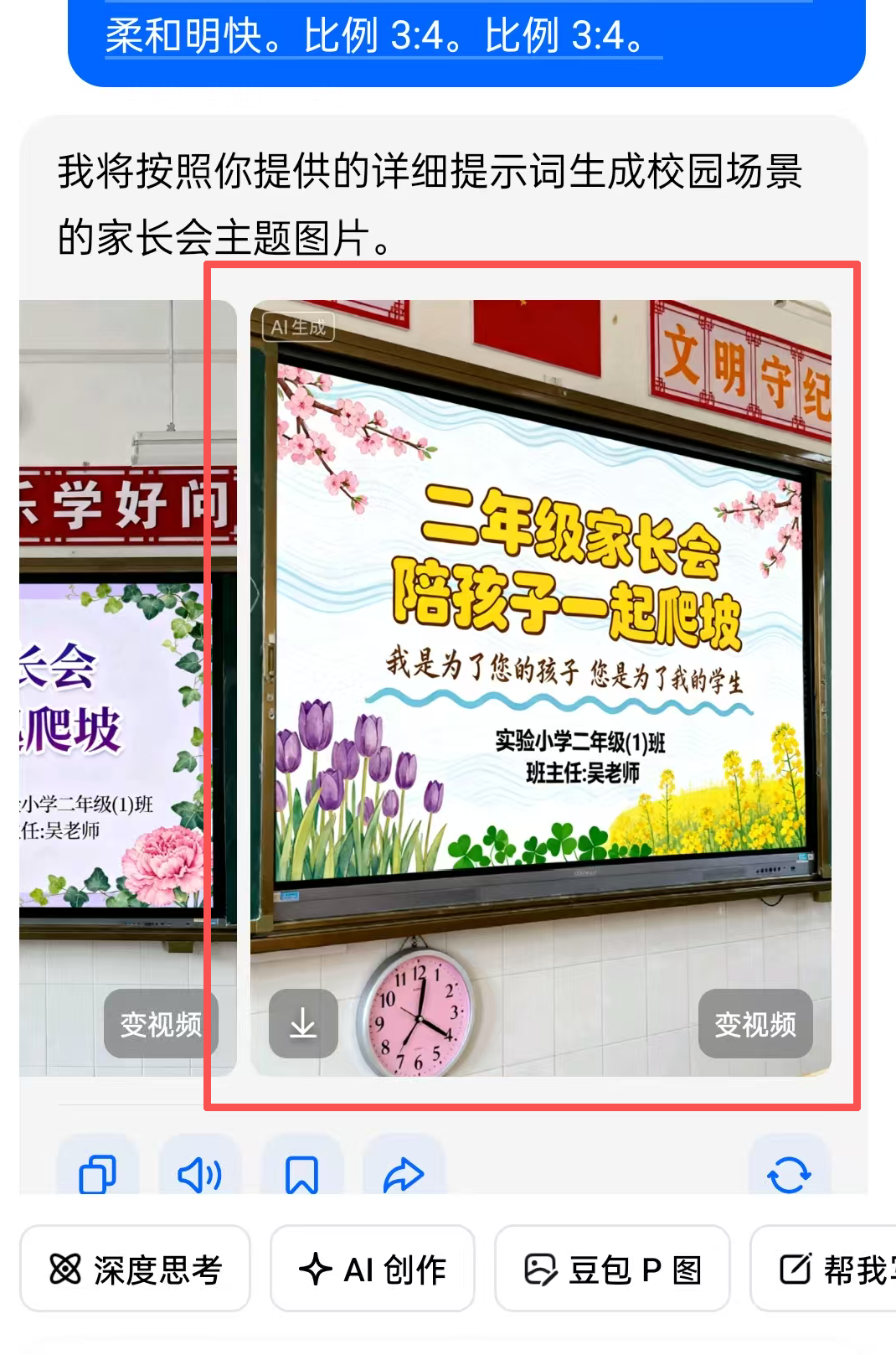 图上多了一块钟表,告诉豆包,去掉它就行。