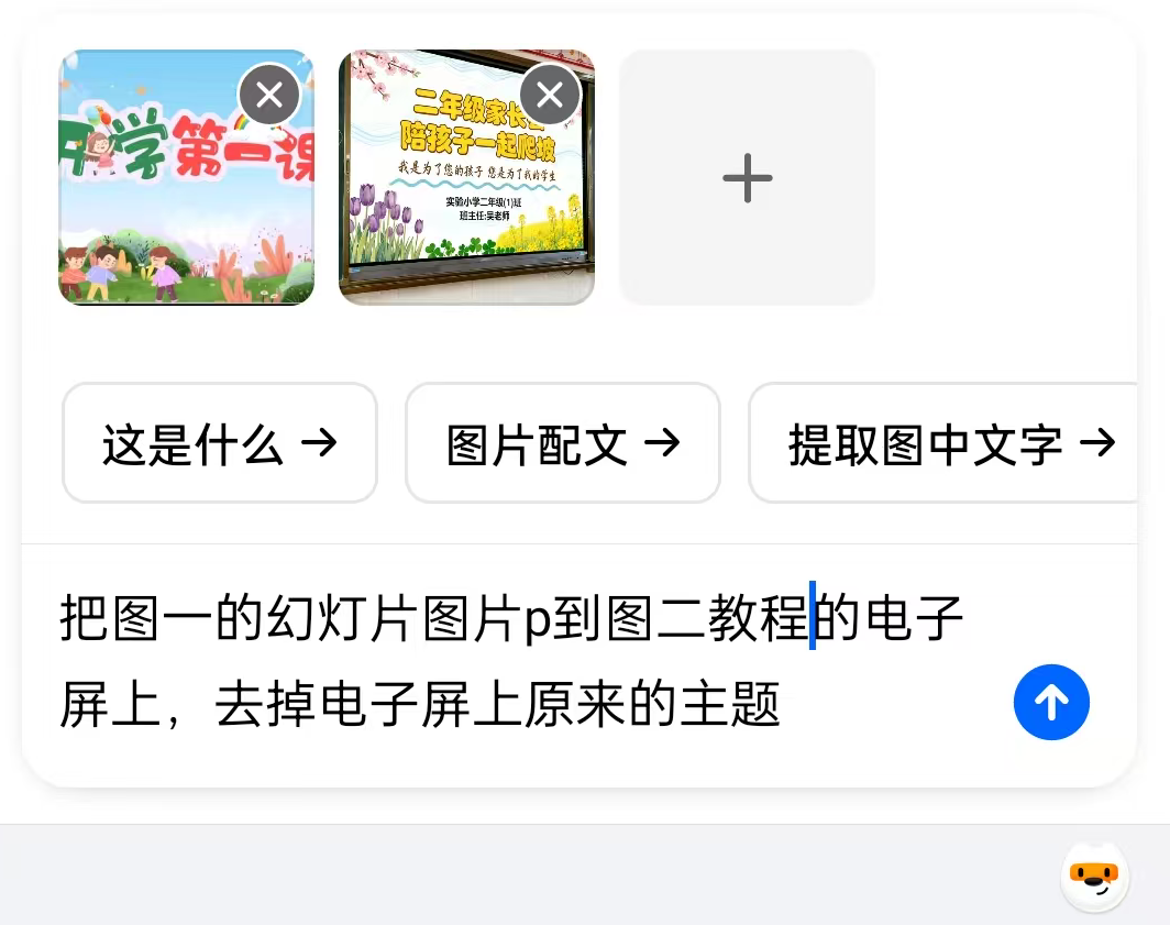 分别上传ppt图片和上面生成好的教室图片,然后按照下图输入相关的指令即可,具体操作见下图:
