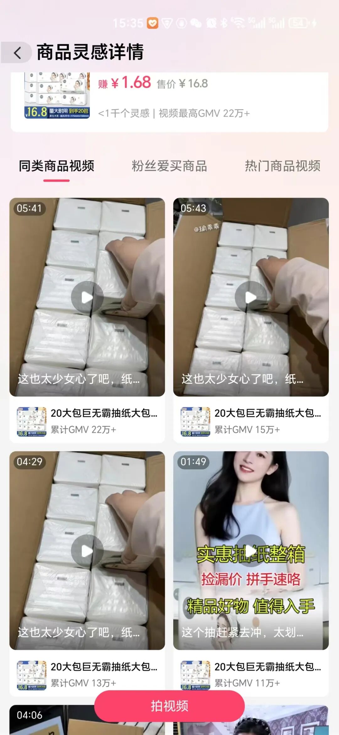 你可以想象一下,别人一条视频可以做到大几十万的成交额(GMV),那我们搬运的视频差一点,小几万的成交额可以不可以呢?