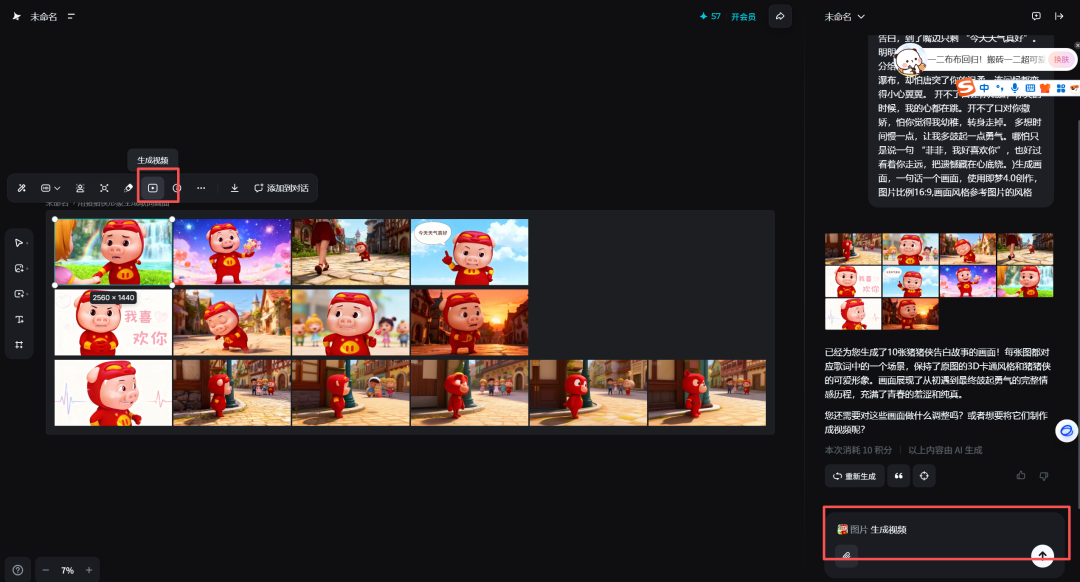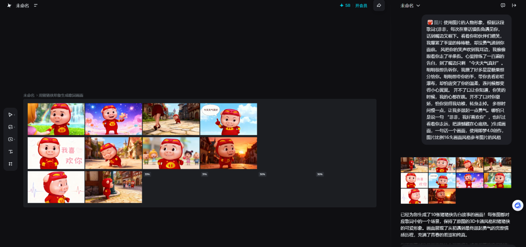2.MV画面生成网址:https://jimeng.jianying.com/ai-tool/generate/?type=image准备一张猪猪侠的角色照片,打开即梦的画板功能,这个功能是刚出来的,输入豆包生成的文案