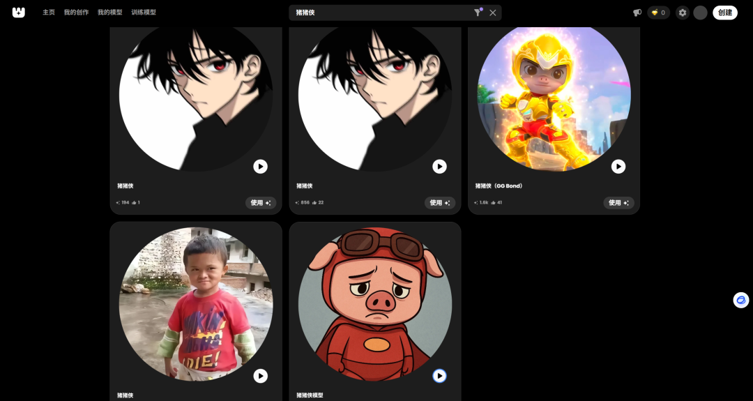 进入搜索”猪猪侠”就可以找到已经有人克隆好了,也可以自已克隆作为训练
