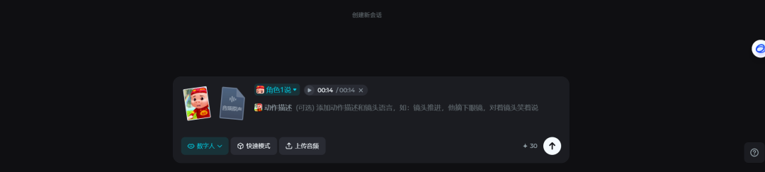 4.开头旁白生成开头是一段旁白,借助即梦对口型就可以生成,上传图片和音频即可