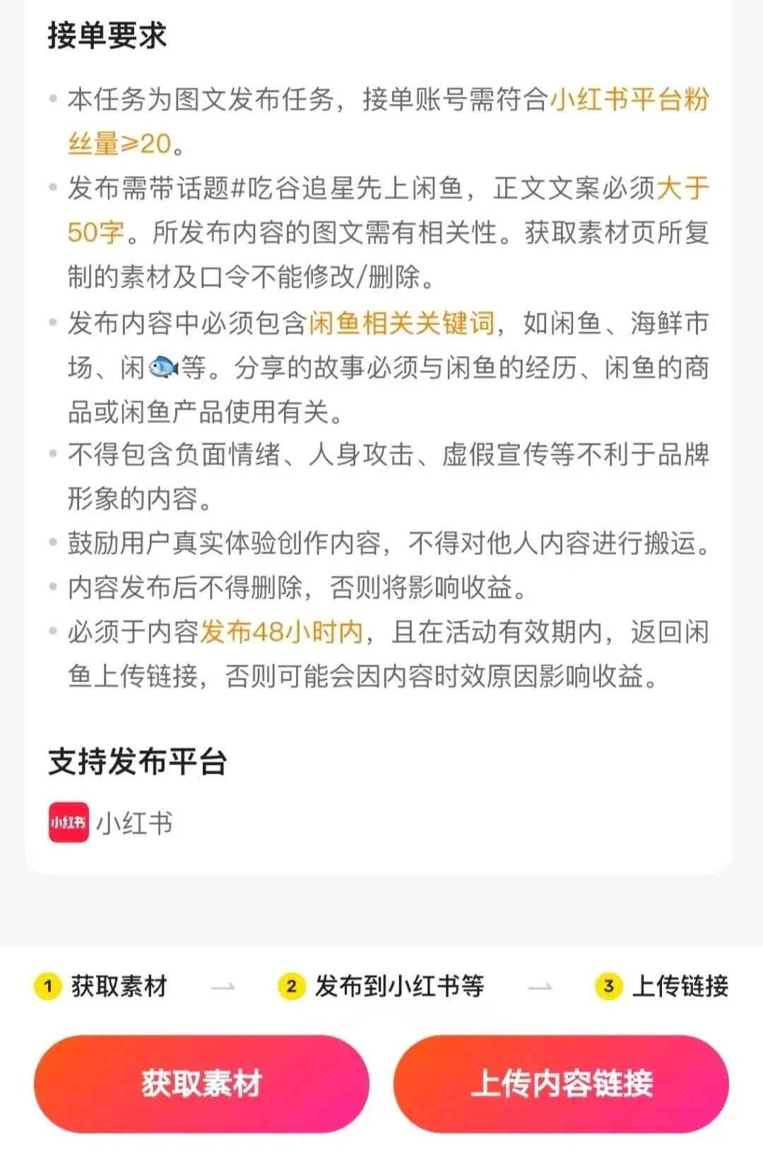 仅需具备20个有效关注者即具备操作基础,日常碎片化时间即可完成基础任务接取。