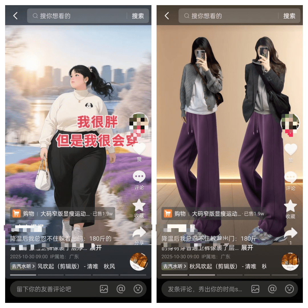 创意独特:利用“丑陋对比美丽”的反差心理,吸引用户点进去查看“会穿搭的自己”。制作门槛极低:所有内容都是 AI 生成的图片,无需实拍。变现效率高:用户看了作品后,心理认同感强,会产生“我穿了这件衣服也会变美”的购买欲望。