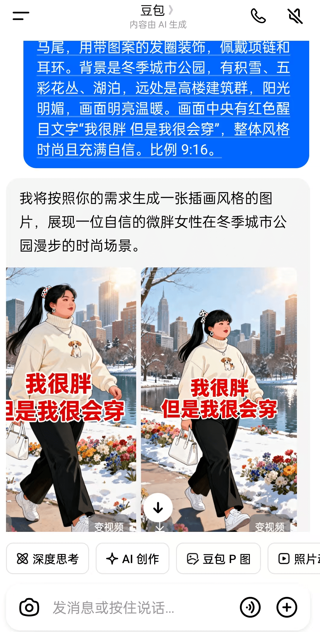 这个项目的本质,是利用 AI 工具生成具有视觉反差的图片,通过图集的形式发布到抖音,挂载小黄车带货大码女装。