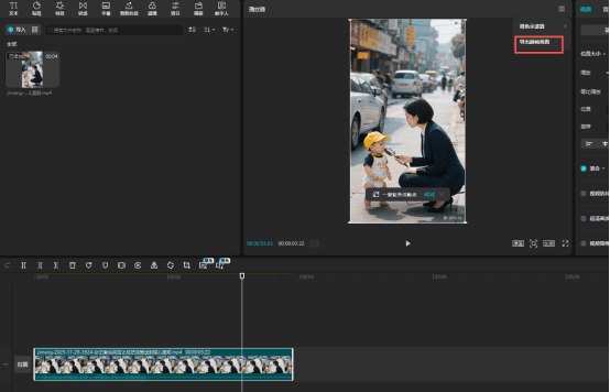 刚生成的视频有点长,后续衔接有点不自然,可以在剪映里面选择合适位置导出尾帧,然后生成新的视频。