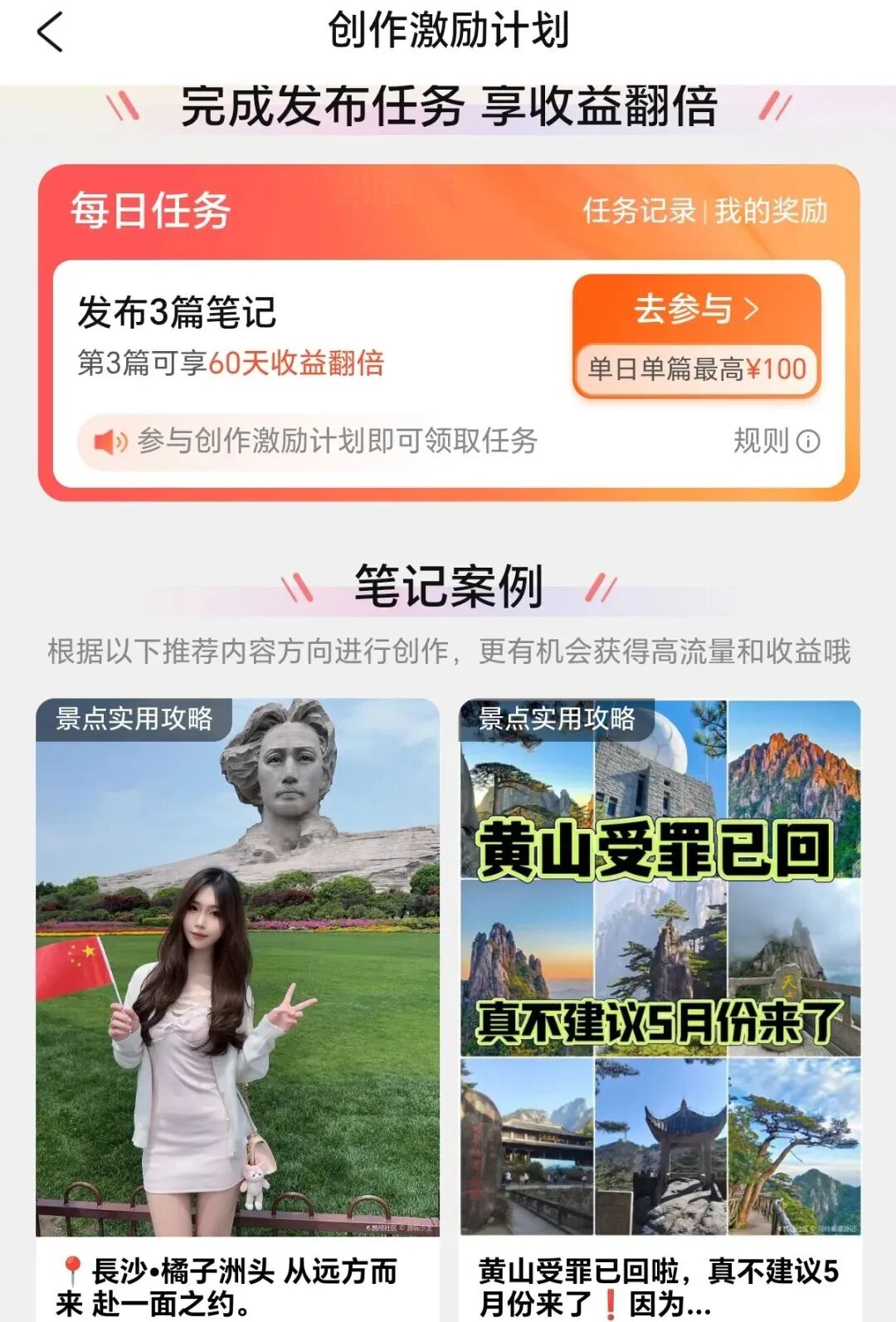 计划聚焦旅游垂直领域内容需求,发布内容需满足基础图文规范(200字文本及6张配图),系统将根据内容质量进行收益核算。