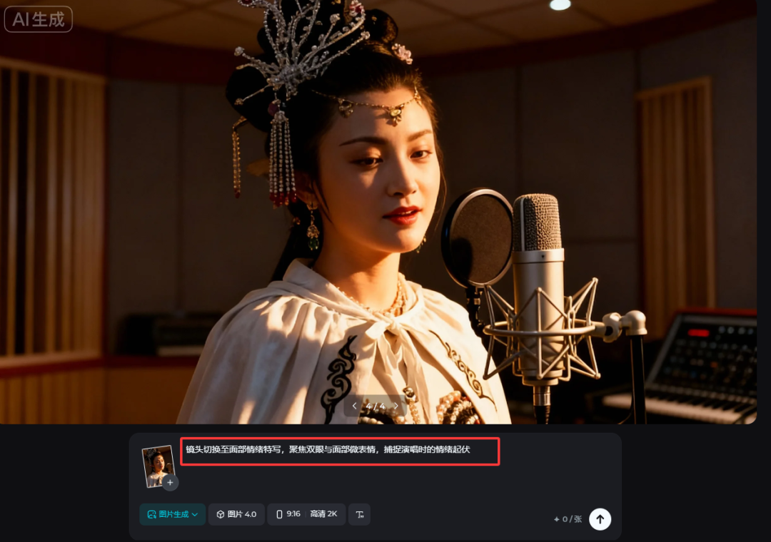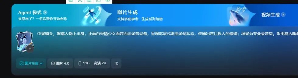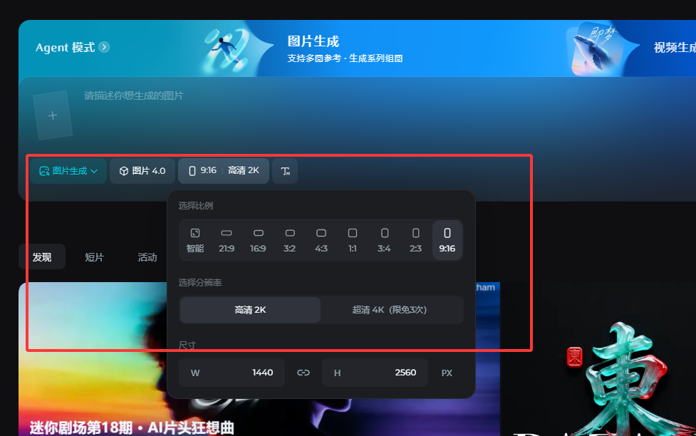 我们在即梦 AI 中选择图片生成,设置比例为 16:9,画质选高清 2K 或 4K。