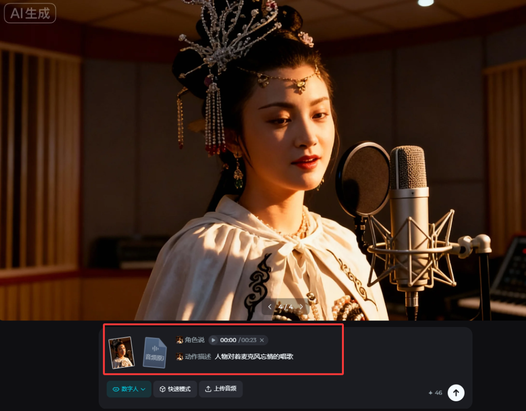 在返回即梦AI后,选择对口型模式并上传音频与图片