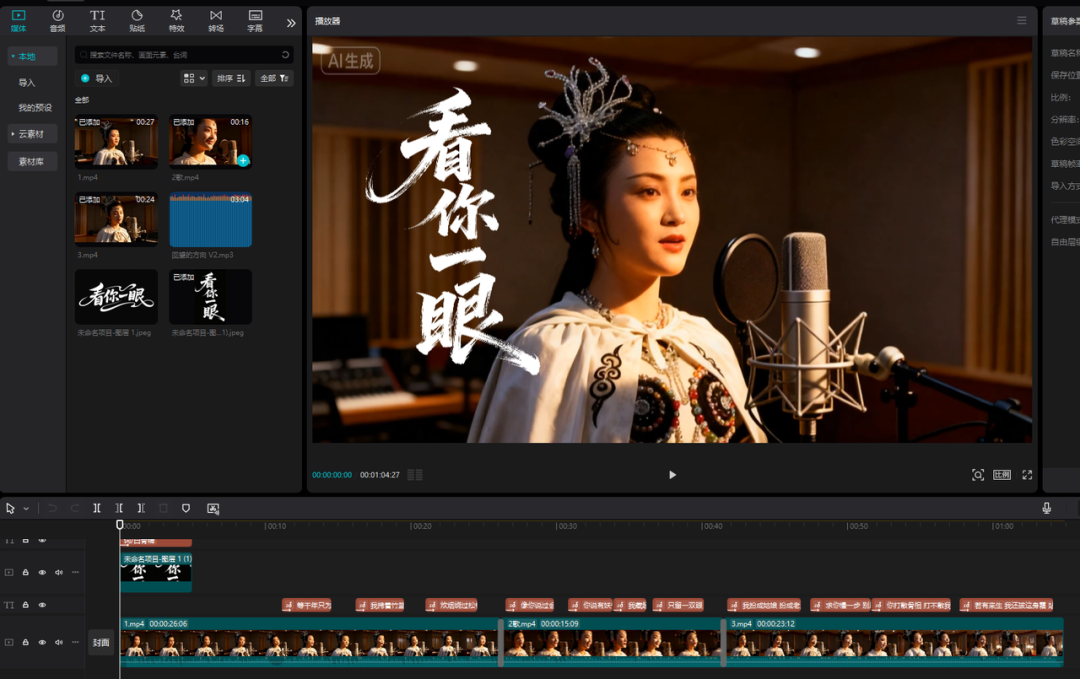 将所有视频制作完成后,我们再添加文字和特效,这样就完成了!