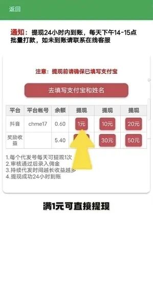 只要有抖音、快手、小红书账号就可以做,账号越多收益越高,根据视频的流量还有奖励,账号放在那也是放着,还不如拿出来每天赚一100+的低保,提现的话是一块钱起提,提现秒到的。