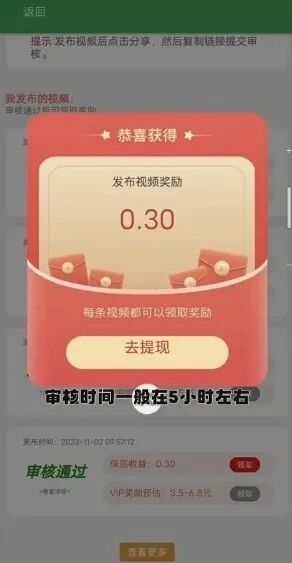 审核时间一般在5小时左右,审核完成后点击领取,即可领取本视频的发布奖励