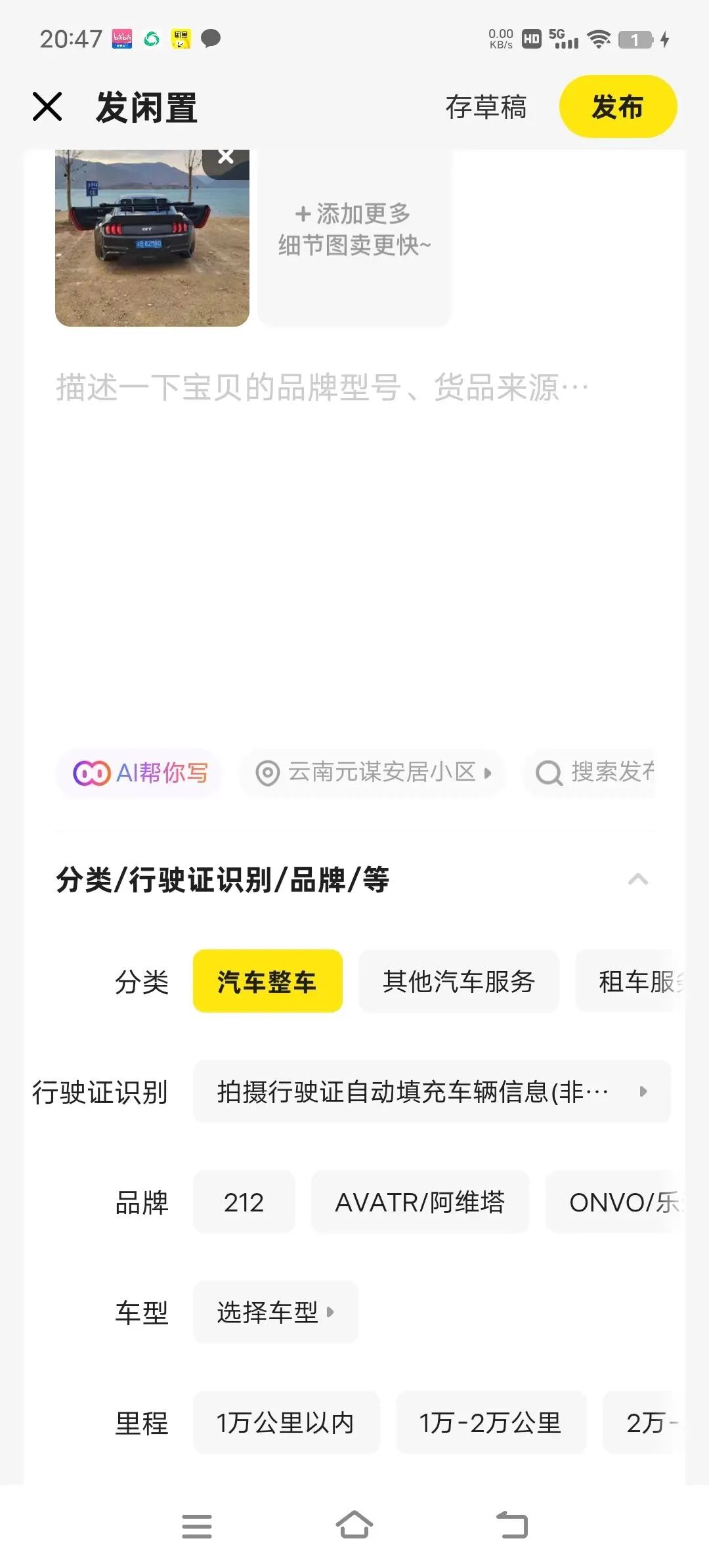 重点放在发车辆类商品上挺管用,比如二手车牌或汽车配件都行。操作时选车辆配件类目,上传实拍图,确保账号近3个月没违规纪录。