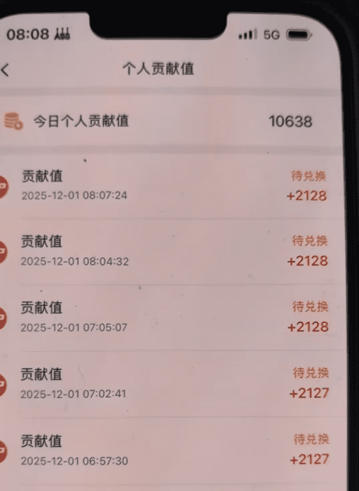 这个平台是以贡献值计算收益,1000 贡献值等于 1 元,可以直接进行兑换,大家可以看到,这个手机的权重有点低,看了14条广告,才4000多贡献,也就是4块多,我另外一部手机,养了权重,看一条2000多贡献值。