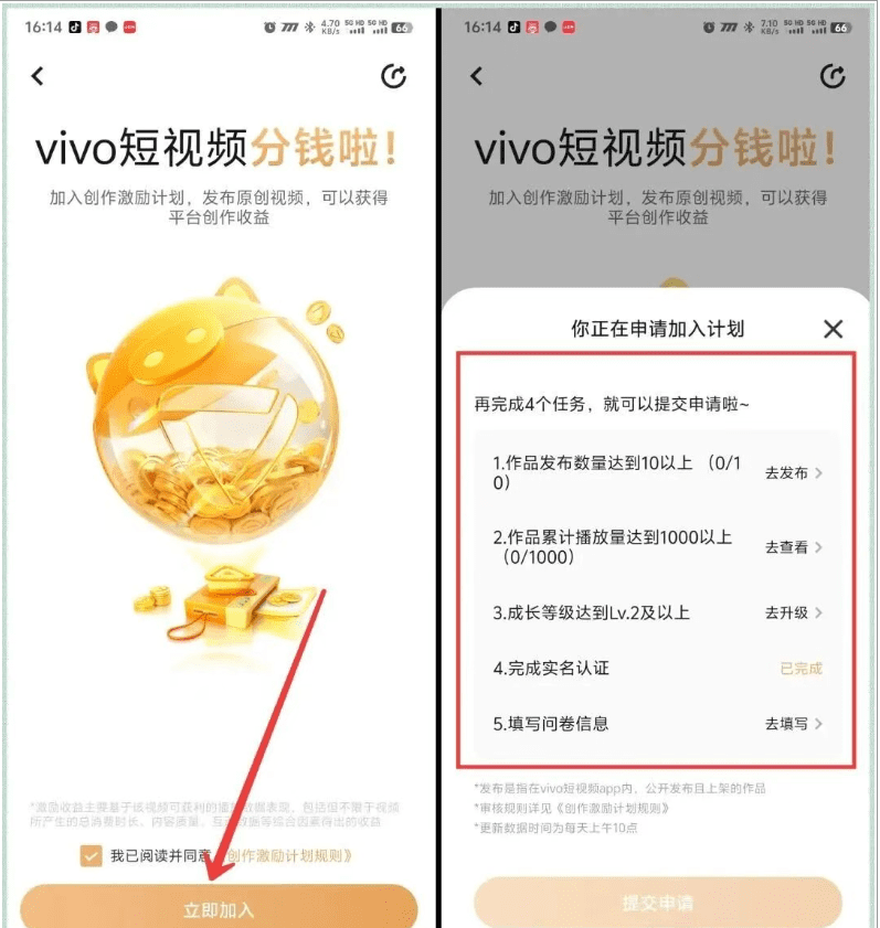 今天给他家分享一个优质的蓝海项目–vivo短视频创作者分成计划