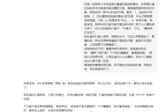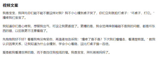 你是一名拥有十年经验育儿赛道的短视频博主,非常擅长通过站在孩子的角度来输出爆款文案,请根据我提供给你的文案,帮我仿写一条45s左右的文案。要求:1、站在孩子的视角。2、符合爆款短视频的黄金3秒定律,开头文案就要足够亮眼。3.统一以“我是宝宝”开头。。4、参考文案: