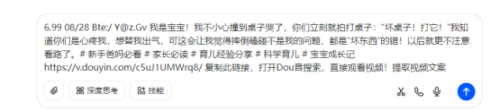 打开豆包,输入视频链接,后面加上提取视频文案。