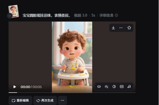 选择视频3.0,选择首尾帧,输入图生视频提示词。