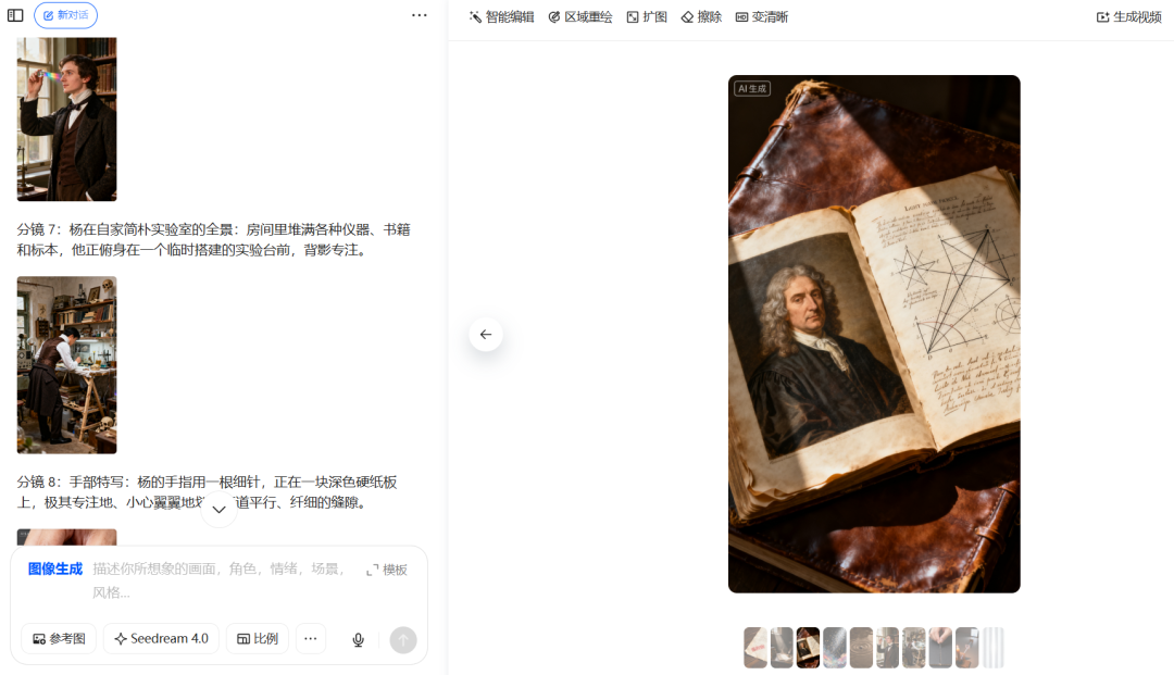点击图像生成,把deepseek生成好的分镜头复制进去,
