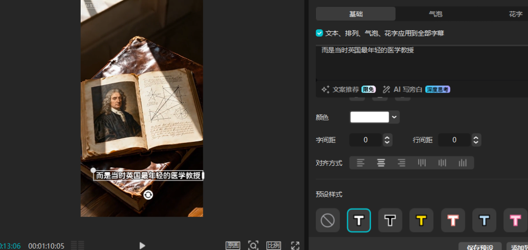 调整好片段,文字可以选择自己喜欢的样式–全局应用,