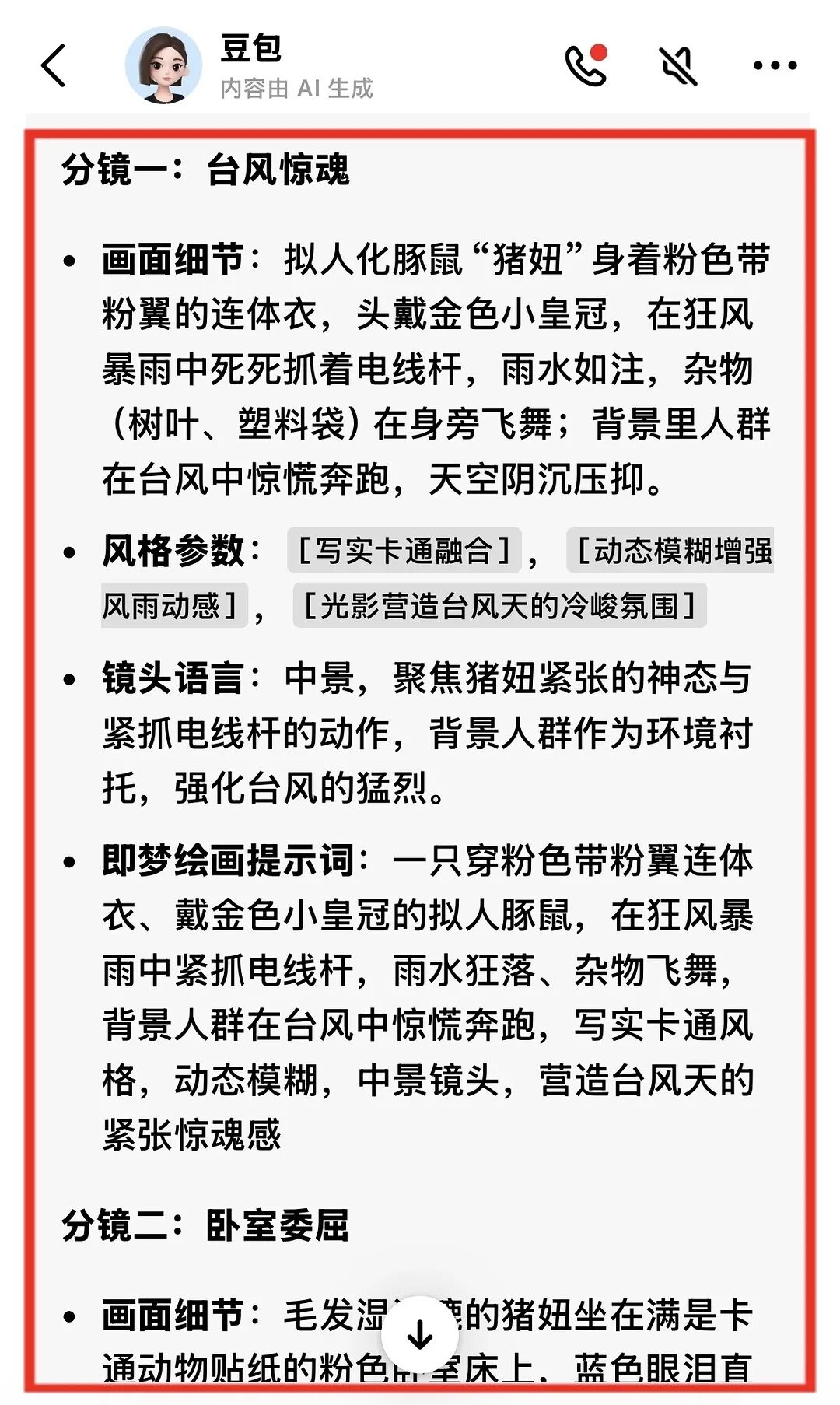 首先:豆包生成作品脚本和分镜