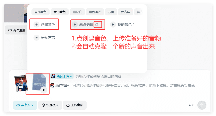 1.先找一段原视频素材,导入剪映分离音频,保留15s的老道的音频(即梦数字人里支持克隆音频)无需其他克隆工具2.准备上即梦生成的图片,选择数字人,选择全部音色,克隆音频