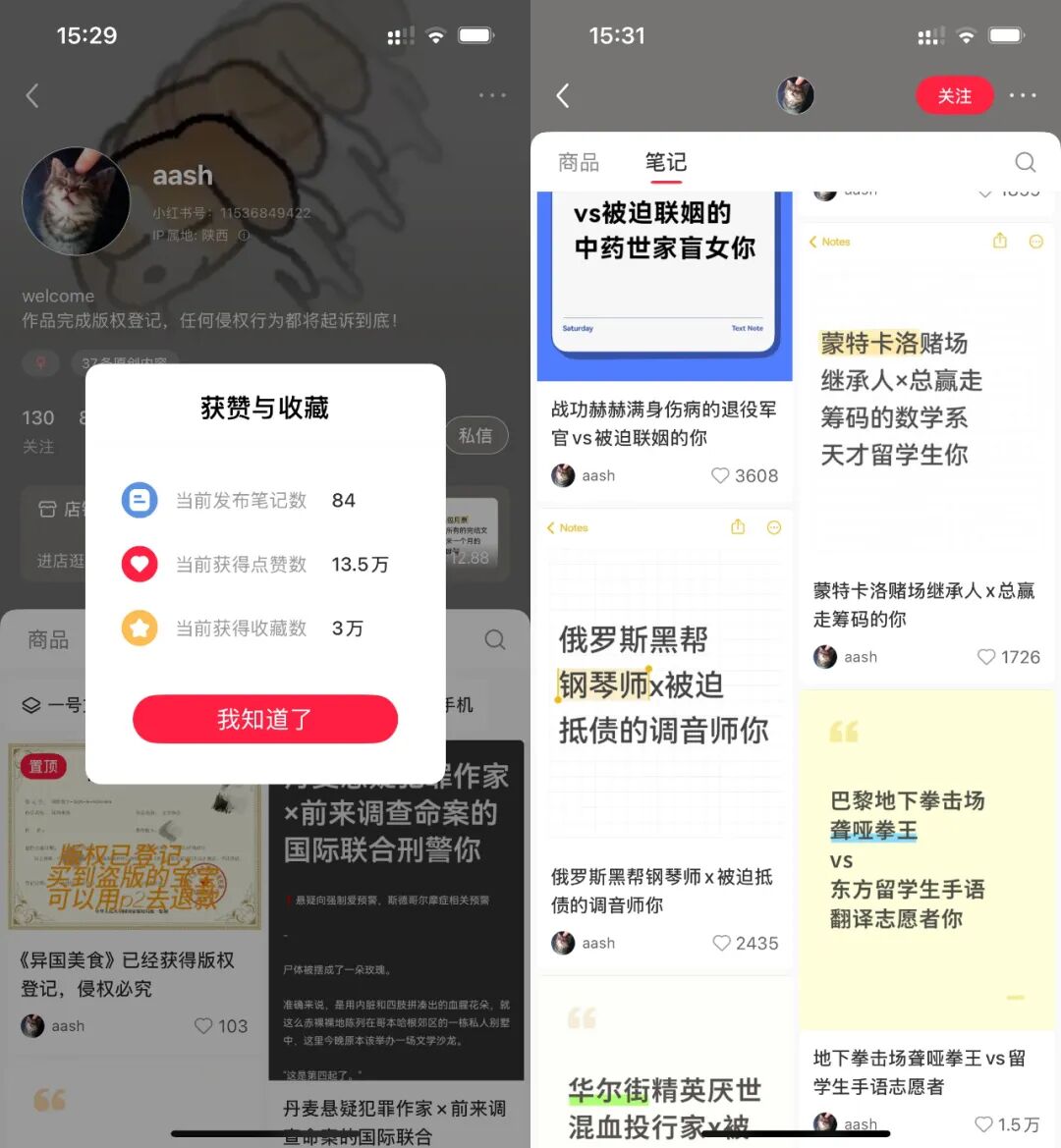 最关键的是这个账号,从起号到现在,一个才发了84篇笔记,
