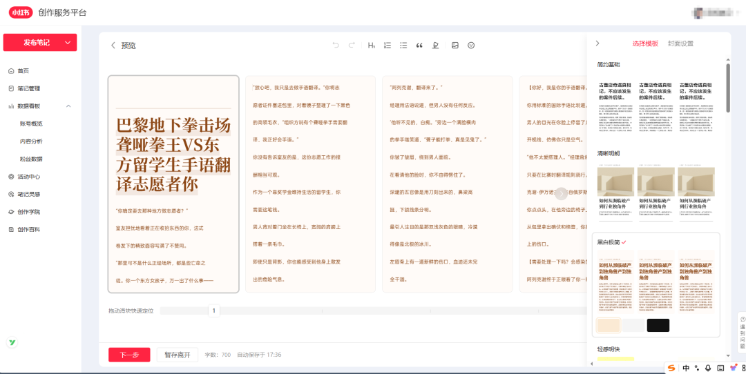 你只要把文案粘贴上去,选择好模板,它会自动帮你排版。