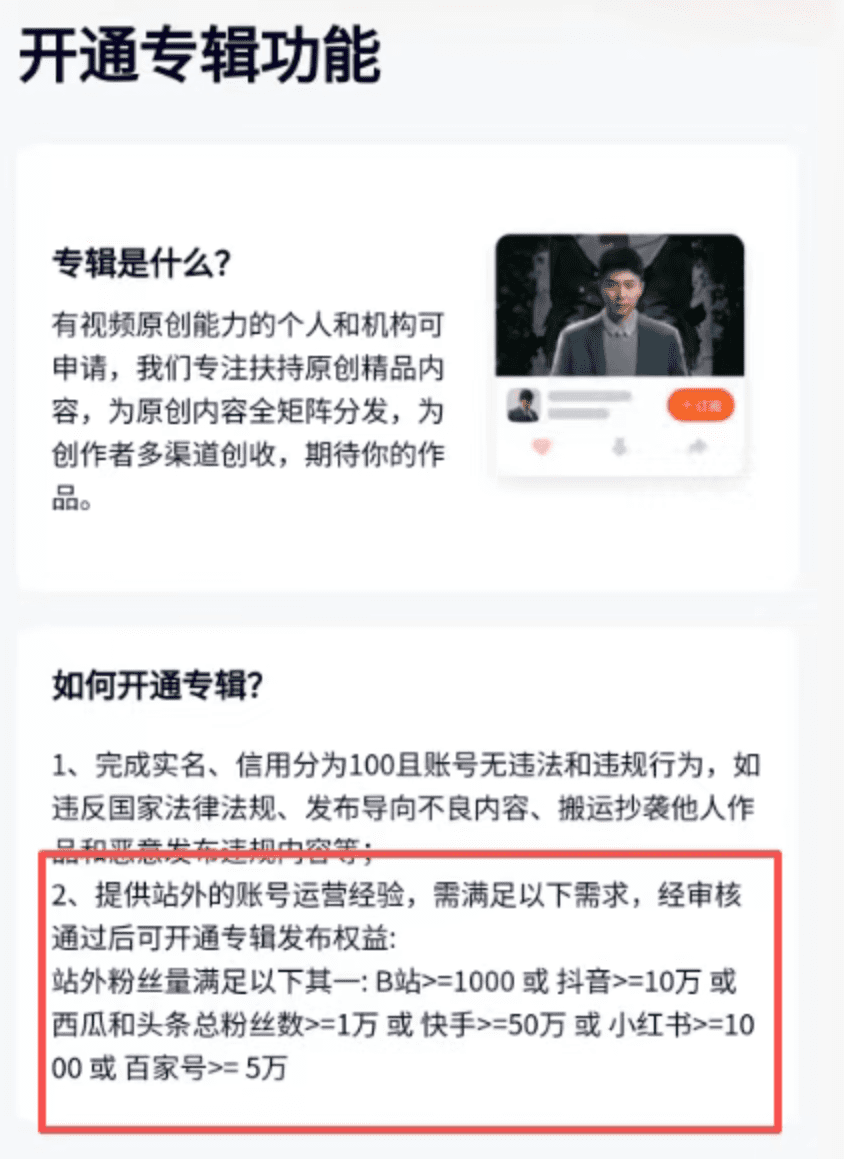 02接着就要开通流量分成和专辑权益。专辑权益需要有门槛,需要1000粉丝才能开通。我们可以从B站,抖音上搬运一些沙雕动画,游戏视频来涨粉。我亲测,大概3-5天那就够了。