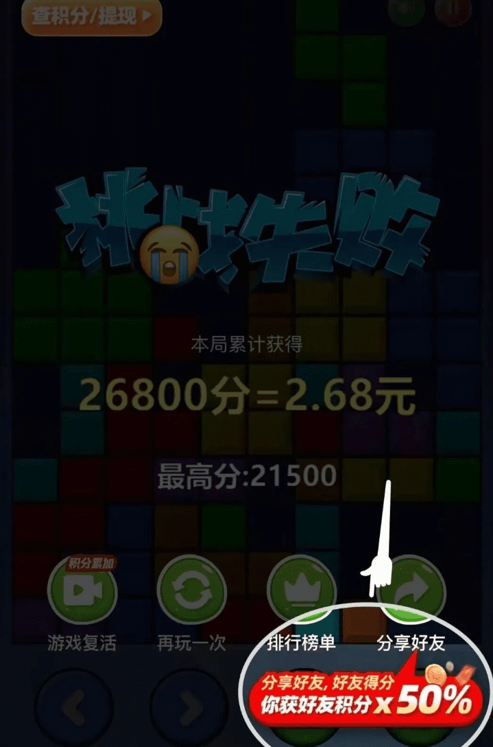 而且,如果你把这个游戏分享出去,你的积分还能翻倍。