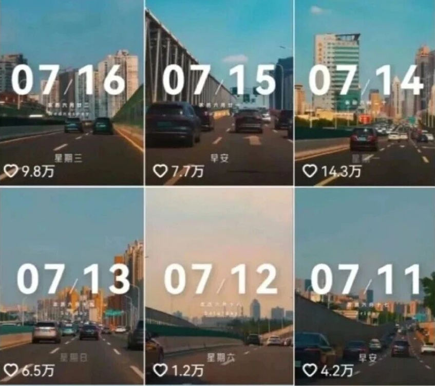 刷其他平台的时候有没有刷到这种视频,视频内容是行车记录仪的视角,再加上元气满满的文案。