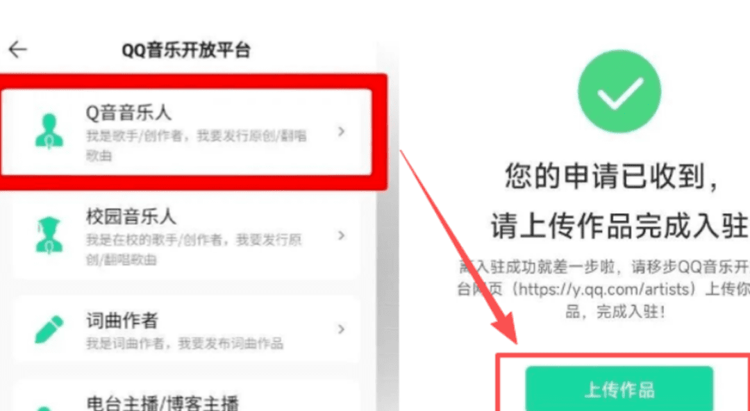 打开 QQ 音乐,点右上角三条杠,进创作中心,申请成为 Q 音音乐人。资料按提示一次性填好,审核通过,你就有发歌权,相当于有了个 24 小时赚钱机器。