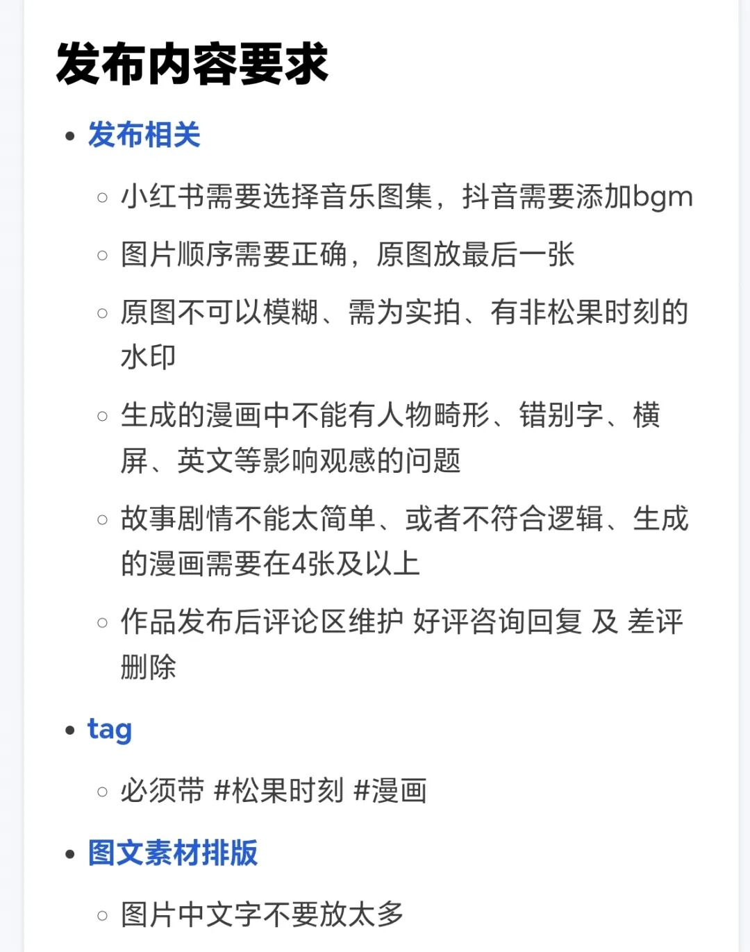 第三步;发布的作品图片必须四张以上,必须带有“松果时刻,漫画”这两个话题,这个地方是重点,如果不带的话是不会给结算的。