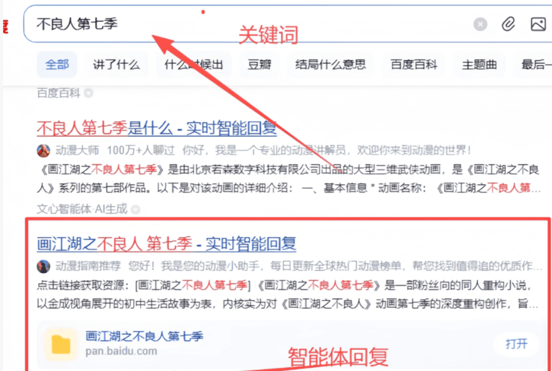 我随手测试了个例子,搜“不良人第七季”,智能体直接弹出了整理好的资源。