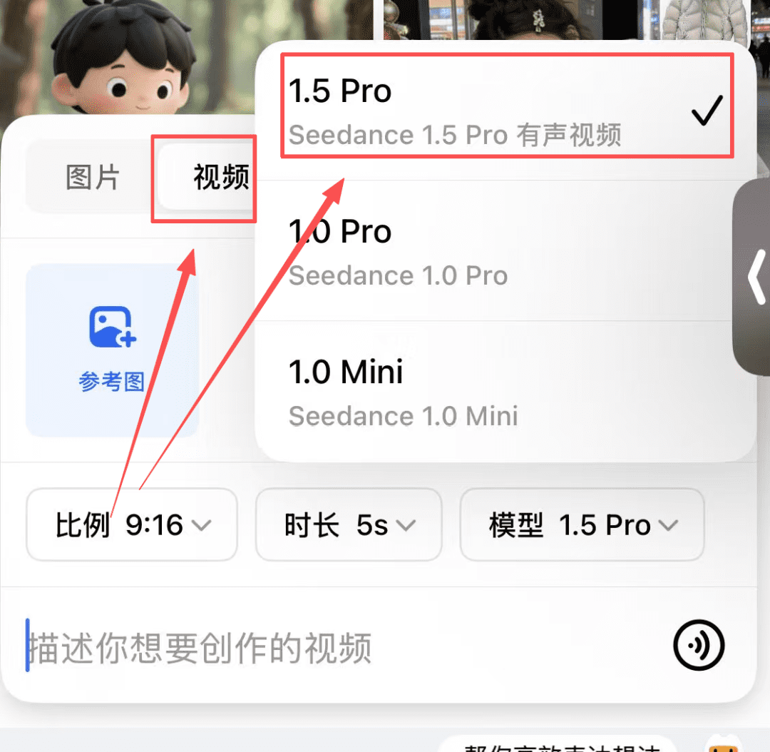 点进来以后,默认是图片的标签,要切换成视频,这里也非常容易出错,一定要按照下图操作,然后模型选择1.5pro,就可以了。